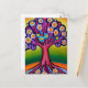 Let someone know you are thinking about them with this postcard. Colourful whimsical artwork. Tree in yellow, white, blue and purple. AI generated art.