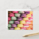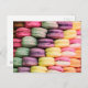 These sweet French meringue-based confections are filled with a tasty centre to create a deliciously sweet cookie sandwich. This stacked rainbow of colours signifies different flavour treats! Colourful Cute French Macaron Cookies Postcard