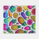 Brighten your everyday essentials with this colourful fruits and vegetables seamless pattern design. Featuring a cheerful mix of apples, bananas, carrots, strawberries, pineapples, oranges, and more, this vibrant artwork adds a fresh and playful touch to any product.