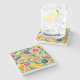 The coasters are gorgeous, a quality feel and heavy weight. They look like a precious archeological find. A rustic stone juxtaposed with a modern floral black and white print. I like the way the print goes slightly imperfect on the cut stone edges giving them a kind-of natural beauty.