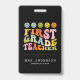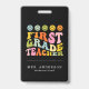Colourful Fun First Grade Teacher Custom Name ID Badge