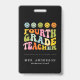 Colourful Fun Fourth Grade Teacher Custom Name ID Badge