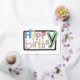 Make birthdays in the office truly special with our vibrant and playful Happy Birthday greeting card! Featuring hand-written text embellished with real gold elements and a charming loose foil frame, it exudes fun and sophistication. Our customisable template allows for effortless online personalisation, ensuring your corporate logo and personalised message shine through. Ideal for celebrating with employees, business partners, and valued customers alike, this card adds a touch of warmth and appreciation to every birthday celebration. Make each occasion memorable and heartfelt with our professional yet inviting greeting card.