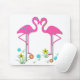 Original graphic artwork of pink flamingo yard stakes with colourful and whimsical flowers. Pretty Summer time mouse pad that would make an excellent gift.