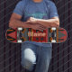 Awesome funky pattern on this skateboard. Colourful, with a field for you to add your/recipient name. Cool.