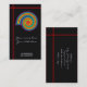 Colourful funky spiral and red crossed lines black business card. Personalise it with your text.