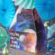 Original Painting was done in acrylic paint on stretched canvas. Artwork was inspired by outer space, galaxies, planets and stars. Painting is a mix of vibrant and muted colours: vivid blues, bright teal and green, purple, white, black, red, orange, pink.
