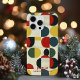 This vibrant phone case features a colourful geometric design inspired by mid-century modern aesthetics. The bold arrangement of circles in red, yellow, green, and navy adds a playful yet sophisticated touch. Perfect for retro design lovers and those seeking a unique and artistic phone cover.