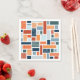 Abstract Mid Century style design with orange, red, blue, light blue, turquoise, mustard colour and navy blue square and rectangle shapes decoration on white background