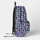 This allover print backpack features a vibrant geometric pattern that is perfect for adults and school children, ensuring their essentials can be carried with style and comfort. Designed for practicality, this backpack features adjustable padded shoulder straps, a spacious interior, a mesh side pocket, and an internal identification label. It offers ample storage space for books, snacks, and other essentials without compromising on its lightweight structure.