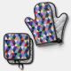 Colourful Geometric Pattern Oven Mitt & Pot Holder Set