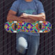 This skateboard deck design features a pattern of vivid and colourful geometric shapes. It is a great gift for pattern lovers.