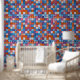 This wallpaper features a pattern of vivid and colourful geometric shapes.