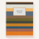 This notebook design features colourful retro inspired geometric design with stripes in a warm colour palette. Customise this journal with your own name or text of choice on the label.