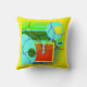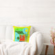 A colourful artistic abstract with basic shapes in yellow, red, blue and green. There are layers of circles, squares, rectangles, boxes, spheres, and faded gradient colours with a bright sunny border. #artsy #cushion