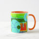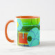 A colourful artistic abstract with basic shapes in yellow, red, blue and green. There are layers of circles, squares, rectangles, boxes, spheres, and faded gradient colours with a bright sunny border. #coffeemug