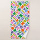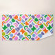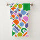 A colourful and modern design that features geometric cut-out shapes. This playful design is inspired by retro, mid-century modern style. Colours included in this abstract pattern are; blue, purple, pink, green, yellow, pink and orange against a white background.