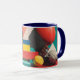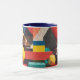 The bold colour palette of red, teal, yellow, blue, black, and cream adds energy and contrast, while speckled and grainy textures introduce depth and a tactile quality. Rounded spheres soften the sharper angular forms, creating an engaging dialogue between precision and playfulness. The composition feels like a modern still life, inspired by design, sculpture, and contemporary art movements.