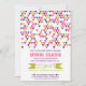 Baby shower invitation accented with geometric triangles pattern in purple, magenta and dark chartreuse. This modern baby invitation will be perfect for both it's a boy and it's a girl showers.