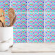 This vibrant print is perfect for everyday use to add colour, or when you are looking for something a little different. Change the background colouring to customise the final look! Whether you want to use this tile as a little coaster or trivet for a drink or plate... or you want to go big with a kitchen backsplash or bathroom tile, is up to you! Do a full wall, border, or just an accent tile. Let your interior design dreams fly! Bright Colourful Geometric Triangles Pink Blue ceramic tile