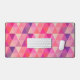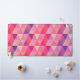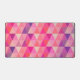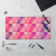 Trendy desk mat with geometric pink, orange, magenta, coral and purple triangles.