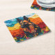 Colourful German Shepherd Dog Portrait Square Paper Coaster