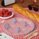 Design with fun Halloween characters. Funny ghosts in pink. Dress up your table with this fun design. See the entire collection. Ideal for children's fall parties.