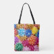 Features a collage of gift bows in many colours of blue, pink, gold, orange and green. A cheerful tote for any need.