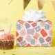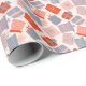 Fun and whimsical wrapping paper featuring illustration of gift boxes with bows and pattern in red, pink, blue, and purple colours.
