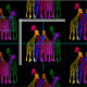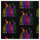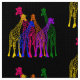 Colourful design featuring outlines of giraffes of varying colours (yellow, green, purple, orange, blue, and pink)