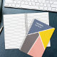 A simple, minimalist design with colourful pastel colour block design with a custom monogram to add student's full name and school subject for back to school season. _