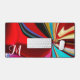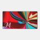 A stunning monogrammed name initial desk mat, that will look great on any desk, and will brighten up any home office or work area. The design features a unique and elegant modern liquified abstract flower, created with an artistic colour flow fused with liquified marble effect. A colourful celebration of mixture different shades of colours, blue, pink, red, gold, purple, and light brown, with a touch of gold. At the left bottom side of this unique desk mat there is an elegant font monogrammed name initial “M”, that is easily customizeable and can be personalised to fit your own name. This unique desk mat is a great typography liquified abstract art gift idea, enhancing any home office and work space with its magical ambiance. This pretty desk mat is part of the