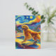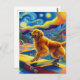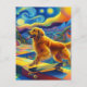 Colourful Golden Retriever Skateboarding Van Gogh Postcard