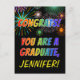 This exciting graduation congratulations postcard design features the message "CONGRATS! YOU ARE A GRADUATE," with the letters having a rainbow spectrum inspired gradient pattern, along with a personalised name, and a colourful pattern inspired by that of bursting fireworks. The back features a message that can be edited. A postcard like this might be a fun way to acknowledge a student who has recently graduated from high school, college, university, or some other program.