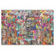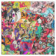 This colourful collage of graffiti wall art is great for home accents throughout the house. Use as draperies in the kids or game room.