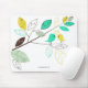 Colourful Green and Yellow Lovebirds Personalised Mousepad. Customisable mousepad featuring colourful bright green and yellow lovebirds and leaves accent. Personalised by adding a name or short phrase. Other colours are available.