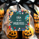 Stickers show skeleton characters arranged in a circle. Includes men, women, cats, dogs, animals, flowers, hearts, and even a trumpet. Lovely, colourful, festive Mexican and hispanic holiday design.