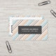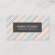 Elegant business cards for any kind of business like interior designer, colour consultant, image consulant, textile, upholsterer, furniture refinisher or other business featuring a striped rainbow pattern in pastel beach colour palette of blue, light blue, grey, brown, yellow and gold and your name and title on the front in refined typography in trendy white colour over a dark grey label.