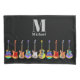 Unique colourful guitar pattern on black with grey personalised name and monogram pillow case. Delight your music lover guitarist and musician friends with detailed illustration of Electric guitars, acoustic guitars and semi acoustic guitars in funky psychedelic pop art bright colours. This multicolored guitar design celebrates the energy and variety of this wonderful musical instrument. Original artwork by artist Catherine Sweetman