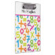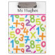 This is custom name personalised clipboard for teachers featuring colourful fun hand drawn numbers and maths symbols. It's great gift for math teachers