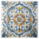 This stunning display features hand-painted tiles adorned with elaborate floral motifs in rich hues of blue, yellow, and white.