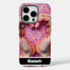 Artistic phone case featuring a hand-drawn heart design in vibrant colours. Add a touch of personal style with this customisable phone case displaying delightful artwork and a unique name detail for individuality.