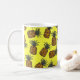 Summer and fresh design featuring hand pained pineapple pattern and bright yellow background.