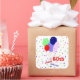 A fun, cheerful and colourful 60th birthday sticker with balloons and confetti.