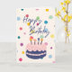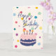 This birthday card features a cheerful and vibrant design, perfect for celebrating someone's special day. The front of the card showcases a delightful illustration of a birthday cake adorned with candles, set against a backdrop of colourful confetti. The playful "Happy Birthday" text is prominently displayed in a whimsical font, adding to the festive feel. Inside, there's space for a personalised message, allowing you to add your own heartfelt greeting. Ideal for birthdays of all ages, this card combines fun and personalisation to make the recipient's day extra special.