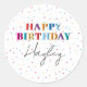 Colourful Happy Birthday Custom Name Confetti Classic Round Sticker