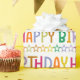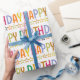 Colourful Happy Birthday Text and Stars Pattern Wrapping Paper