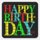 Colourful Happy Birthday Text with Black Backgroun Square Sticker