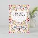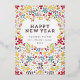 Colourful Happy delicate GOLD foil New Year Floral Holiday Card