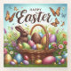 Colourful, Happy Easter basket with eggs Glass Coaster